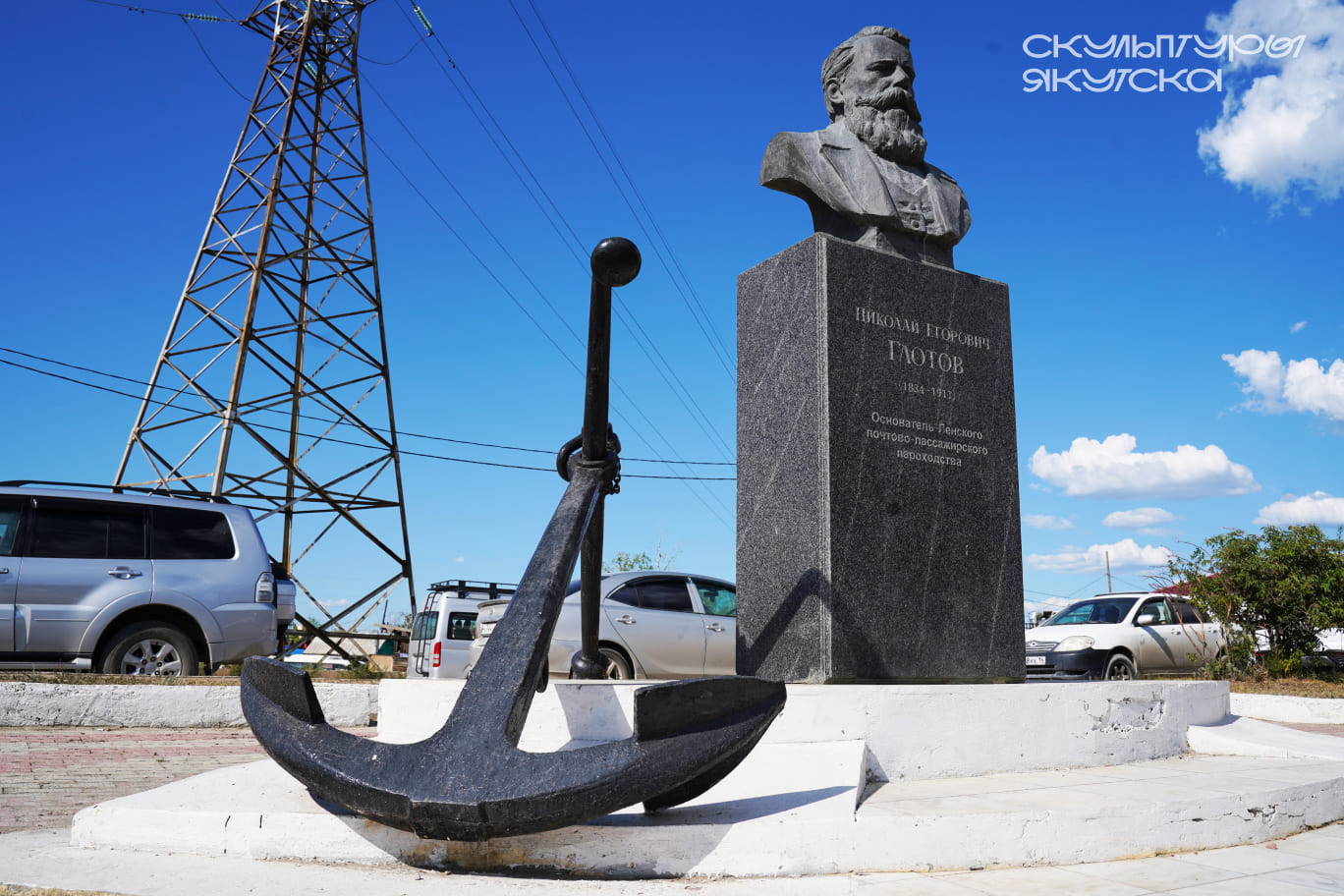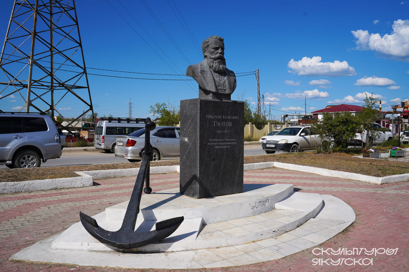 Инициатива установки бронзового бюста Н. Е. Глотова принадлежит общественной организации «Транспортный союз Республики Саха (Якутия)».