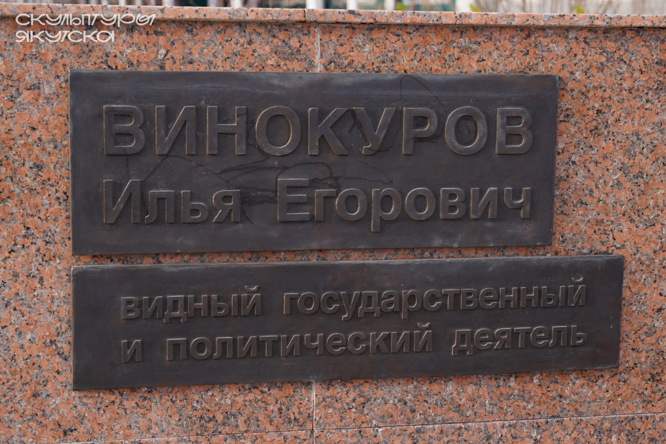 Скульптура выполнена из бронзы, постамент — из гранита. Илья Егорович изображен сидящим в раздумье, в руке он держит документы. Инициатива установки памятника принадлежала правительству республики и общественности Намского улуса в рамках увековечивания памяти выдающихся деятелей Якутии. Высота бронзовой фигуры составляет около 2,5 м.